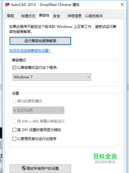 右键单击CAD图标,选属性→兼容性,去掉“以管理员身份运行此程序”前面的对号。并勾选以兼容模式运行这个程序,选择WIN7
