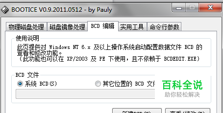 (1)运行bootice工具。点击bcd编辑