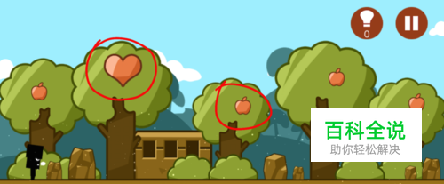 点击第二棵树上,得到爱心。 再点击第三棵树上,得到苹果。
