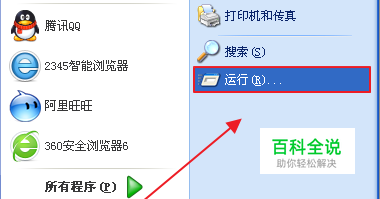 用鼠标左键单击电脑左下角“开始”,在弹出的菜单中选择“运行”,打开运行界面。