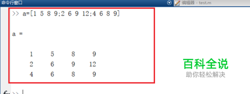 第一步我们首先需要知道matlab中求一个矩阵最大值用max函数,求最大值位置用find函数,这里创建一个a=[1 5 8 9;2 6 9 12;4 6 8 9]矩阵,如下图所示: