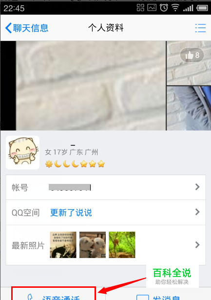 打开需要查看是否隐身的QQ资料页面, 然后点击“语音通话”按钮。