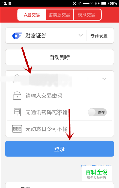 输入你的股票账户以及密码,并点击登录。