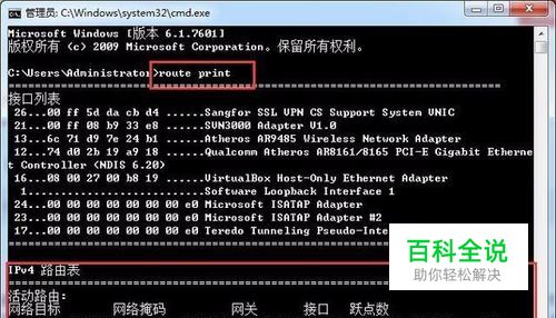 设置好每块网卡的ip,在dos窗口下使用route print查看时会看到。即指向0.0.0.0的有两个网关,这样就会出现路由冲突,两个网络的访问都会出现问题。一会儿内网通,一会儿外网通,我们需要手动配置路由,才能实现同时访问两个网络。