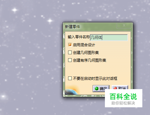 打开CATIA软件,新建一个PART文件,命名为,几何体;
