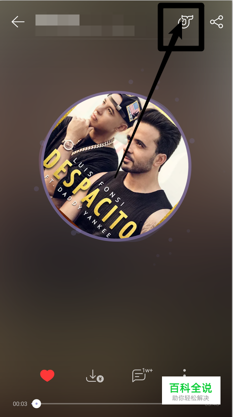 打开网易云音乐,打开一首歌点击右上角【鲸云】图标;如图所示