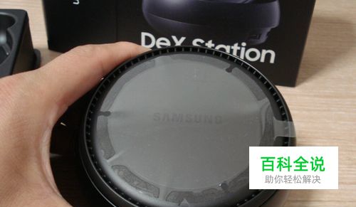 DeX的上盖很简洁,只有一个SAMSUNG的商标,在开启处有一个不明显的小三角形标志。用手指按那个小三角向下一推,上盖就开始从后面上翻,直到自动完全弹开,角度正适合手机靠在上面,和无线充电板差不多。
