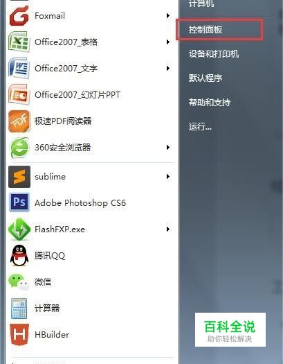鼠标点击【开始】,找到【控制面板】如图位置: