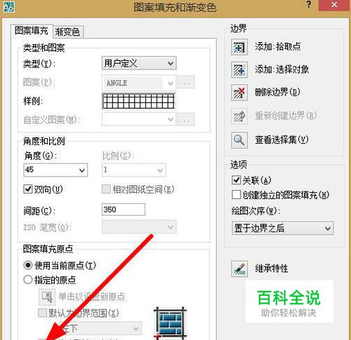 将光标中心点击要指定的原点,我指定的原点是如下图红色箭头所示的位置,然后回到填充编辑框