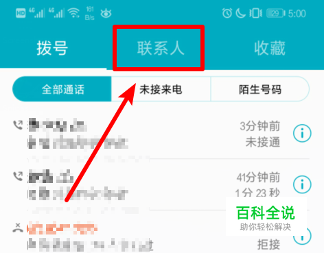 点击后,会显示出通话记录页面。我们选择上方的“联系人”进入。
