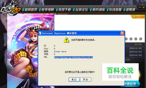 有时打开QQ飞车登录界面,都会弹出当前页面的脚本发生错误对话框,每次都要选择关闭,觉得很烦恼!今天教大家怎样解决!