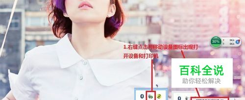 第一步:在屏幕右下方找到U盘(热插拔设备)的图标鼠标右键点击确定自己的可移动设备的存在,然后鼠标左键点击打开设备和打印机;