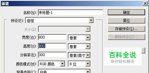 打开PS,新建文件,设置图片大小为800x800像素(详细参数见图)。