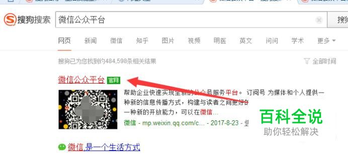 打开电脑上的浏览器,搜索“微信公众平台”