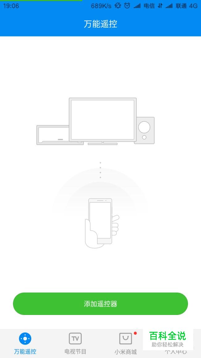 打开“万能遥控”后界面如下,选择“添加遥控器”