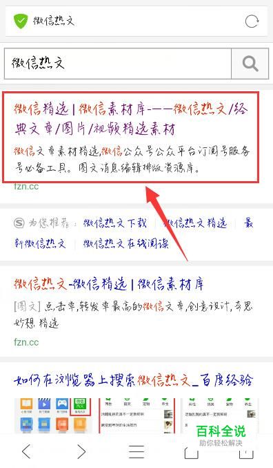 在搜索引擎中输入“微信热文”,点击进行搜索。