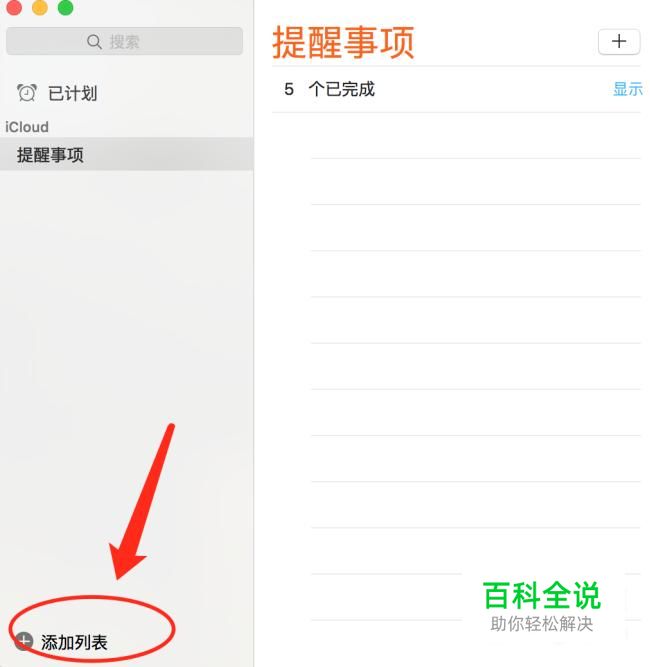 打开,提醒事项, 在左边的列表,点击‘+’,先创建个事项列表,比如叫‘日常提醒’,将日常需要提醒的事项,集中创建在这个列表里,有列表方便分类管理。