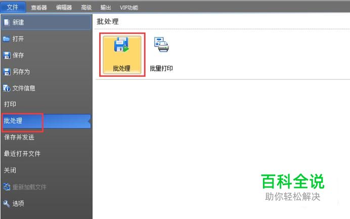 在CAD编辑器的左上角点击“文件”——“批处理”。