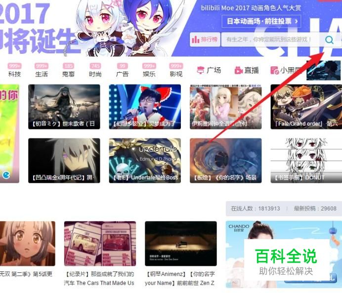进入b站后点击右上角的搜索栏。