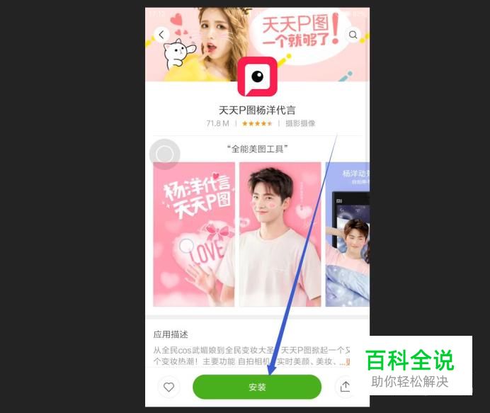 下载安装天天p图 如果想要下载这款软件,可以到手机的应用商店里面去下载,很方便的就可以下载到这款软件。在手机商店里面下载完成之后,会自动的安装,非常的方便。