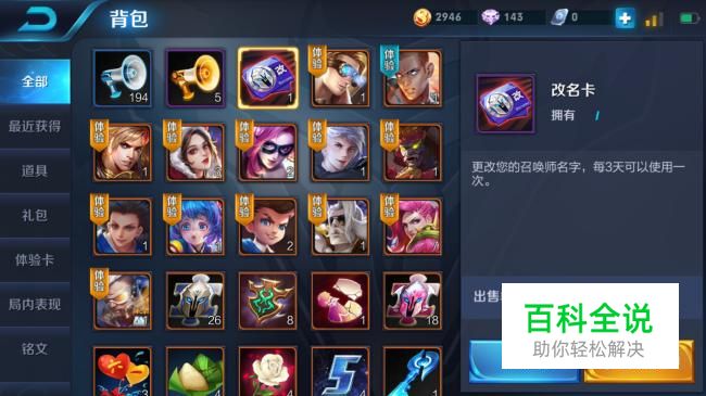 当我们获得更名卡以后,点击背包按钮,在背包里找到更名卡道路,这里显示3天内只能使用一次,所以更名后想再更改,必须等到三天以后才行。