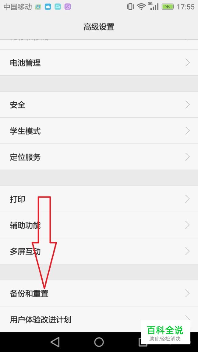 在高级设置中点击备份和重置。