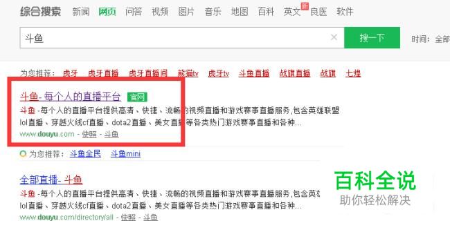首先我打开电脑中的浏览器,输入“斗鱼tv”进行搜索,点击第一个搜索到的斗鱼官网链接进入斗鱼平台!