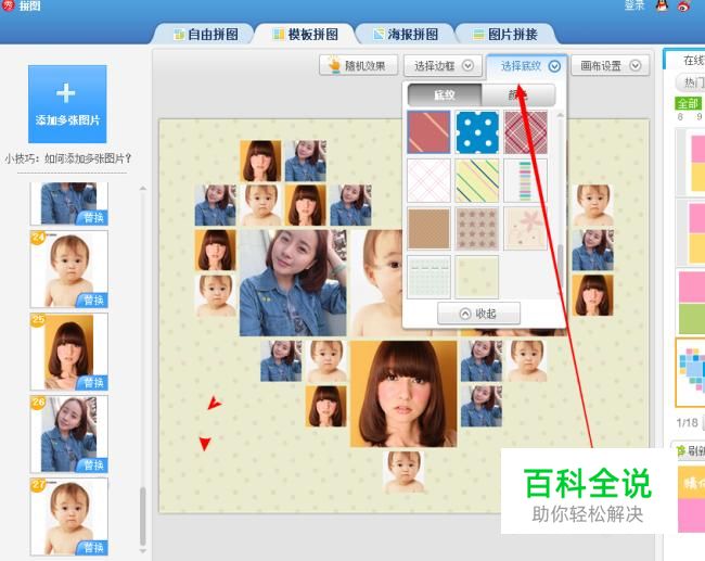 在左边点击添加多张图片,我们选择足够多的图片,让每个空处都有图片填充。