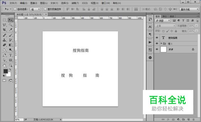 然后,我们无论点击画布中四个文字的哪一个,都是选择的四个文字图层编的组,也就可以同时快速移动这四个图层了。