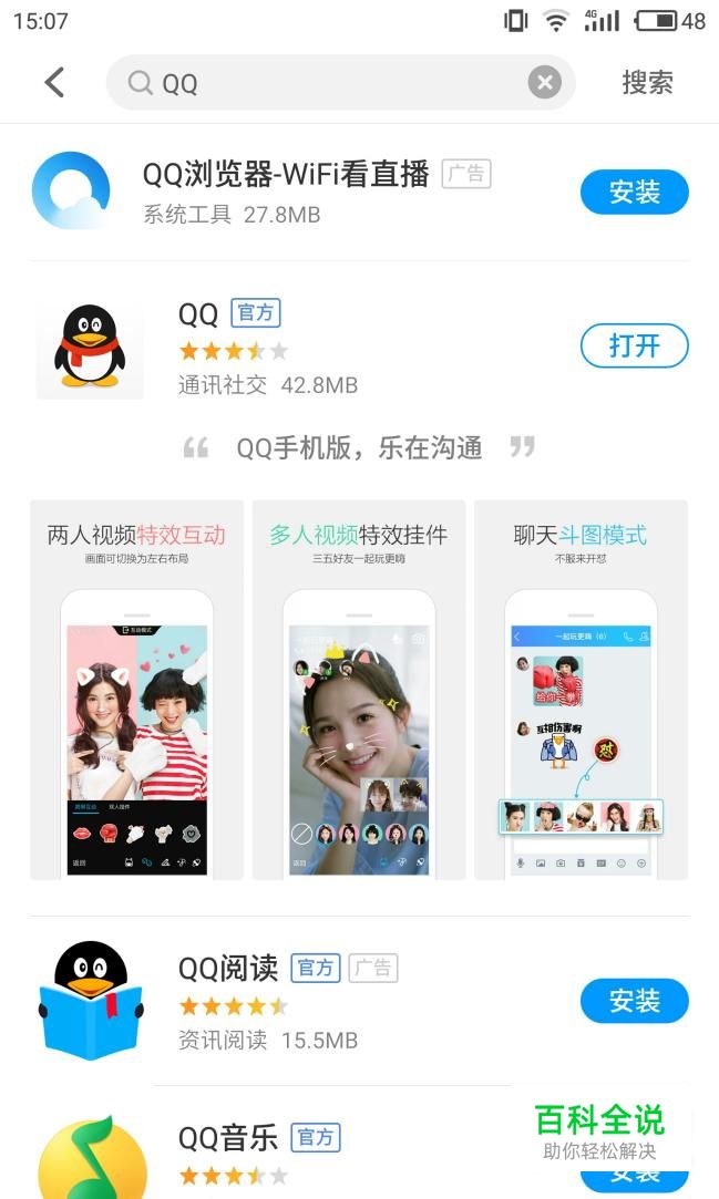 打开手机,找到应用商店,搜索QQ并下载。(注意要下载6.7版本以上的QQ)