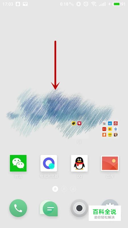 点击按钮截图方法:进入手机主界面,下滑屏幕呼出通知栏。