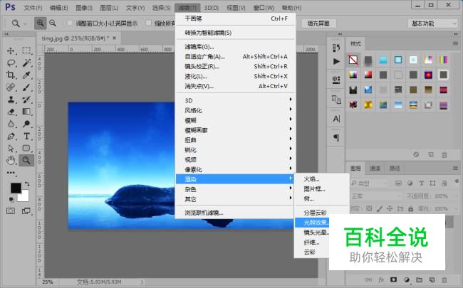 给图片添加“光照效果”滤镜效果,参数及设置如图。