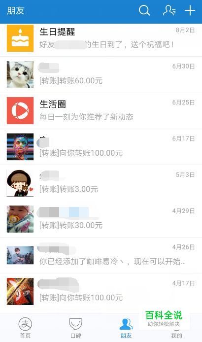 打开支付宝,点击“朋友”,从列表里找到我们转账的一些记录,找到有问题的那一单,点进详情页面。