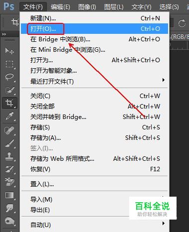 菜单栏:执行“文件”-“打开”命令,载入图片。