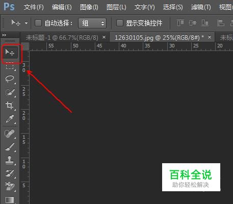当然我们也可以使用下列方法进行操作: 点选“工具面板”上的“移动工具”。