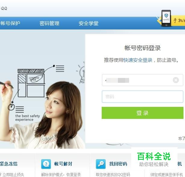 进入QQ安全中心官网,登陆自己的QQ账号。