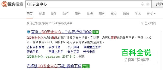 打开搜狗搜索,输入QQ安全中心关键字查看结果。