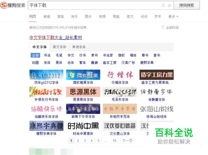 打开搜狗搜索,输入字体下载关键字,确认后查看搜索结果。