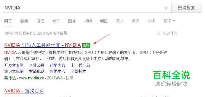 首先使用搜狗搜索NVIDIA,进入英伟达官网