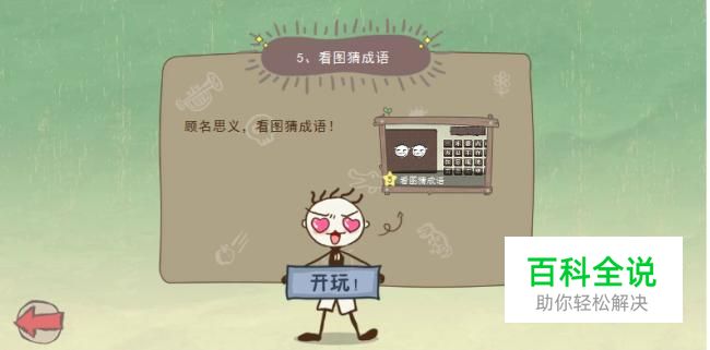 画面中出来【看图猜成语】,左边有两个小人,右边是汉字。