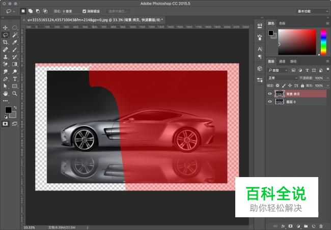 在左侧工具栏色板下方点击“快速蒙版编辑模式”,点击后框选外的区域变红。