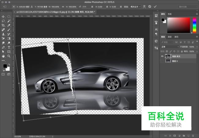 按CTRL+T进入自由变化,对图层进行旋转移动即可完成处理。