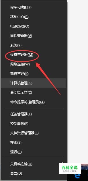 或者win10系统下点击“windows+x”键,打开“设备管理器”。