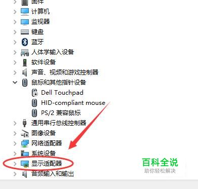进入设备管理器之后,点击“显示适配器”左侧的三角箭头。