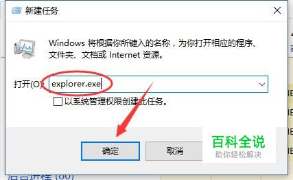 在弹出的窗口中输入“explorer.exe”并点击确定即可。