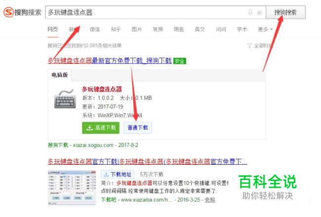 首先在浏览器搜索:多玩键盘连点器,点击普通下载。