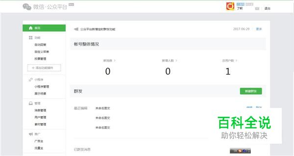 首先我们登录微信公众平台,进入到主界面,如图所示。