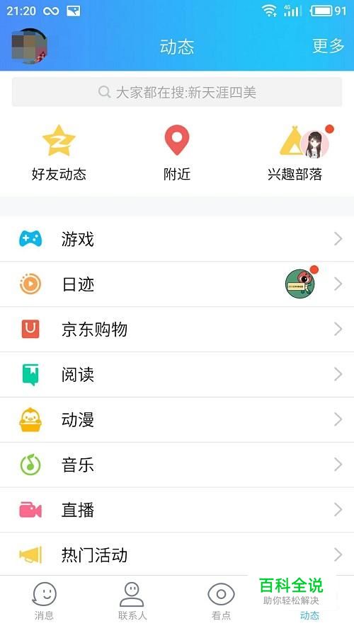 首先打开手机QQ,点击右下角的动态,显示页面如图所示。