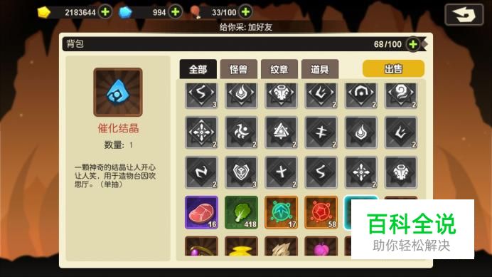 在背包中选择“催化结晶”,即可看到相关的物品信息介绍。