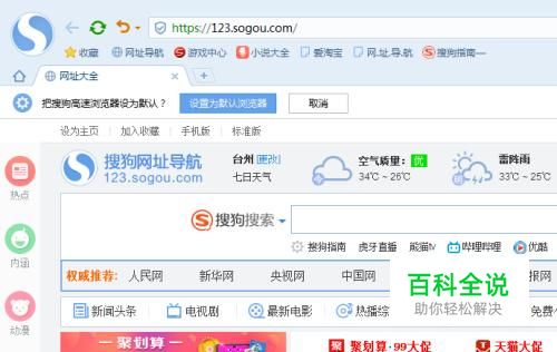打开电脑桌面搜狗浏览器的图标,到达搜狗浏览器的主页面;主页面有很多内容;